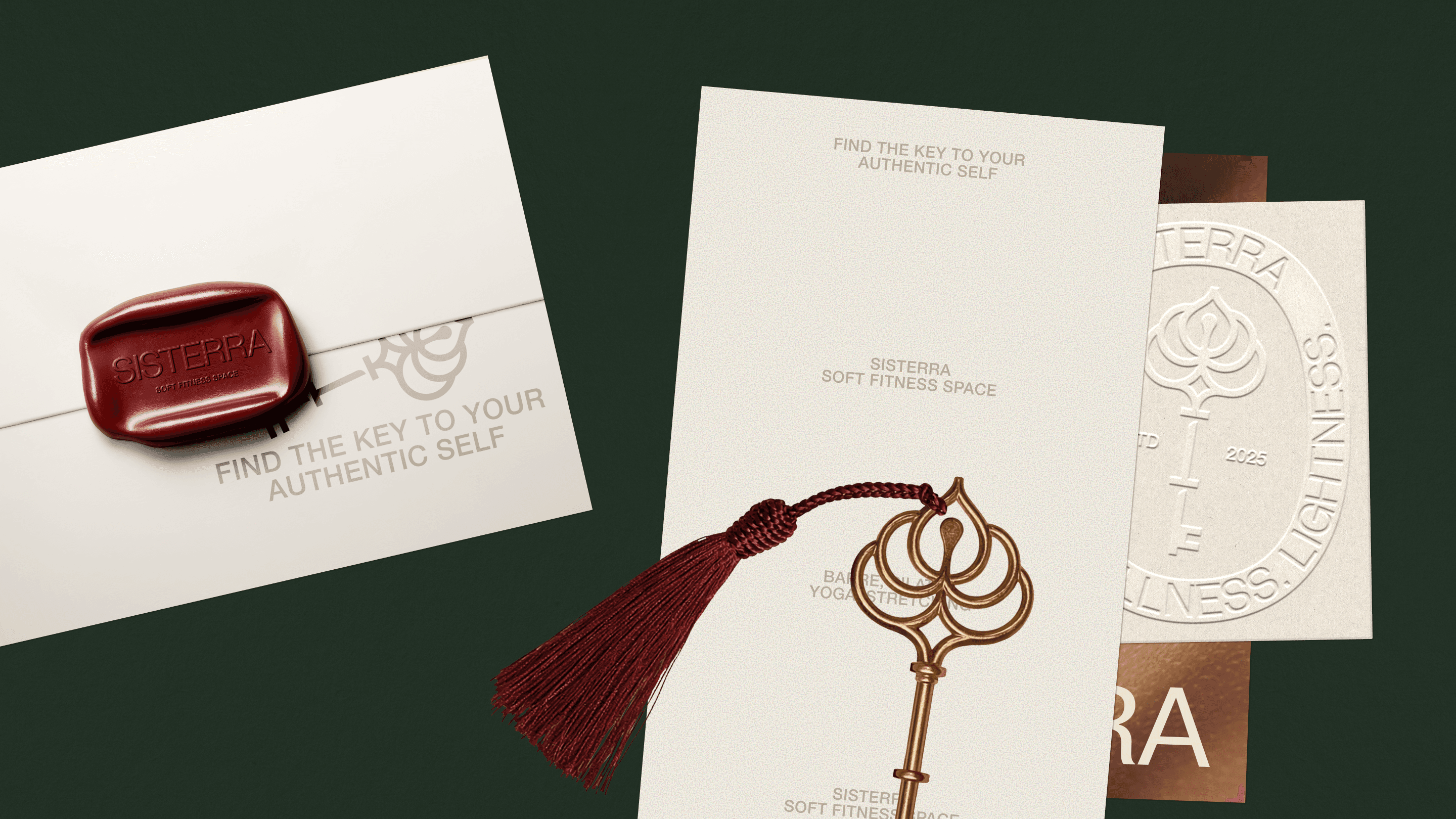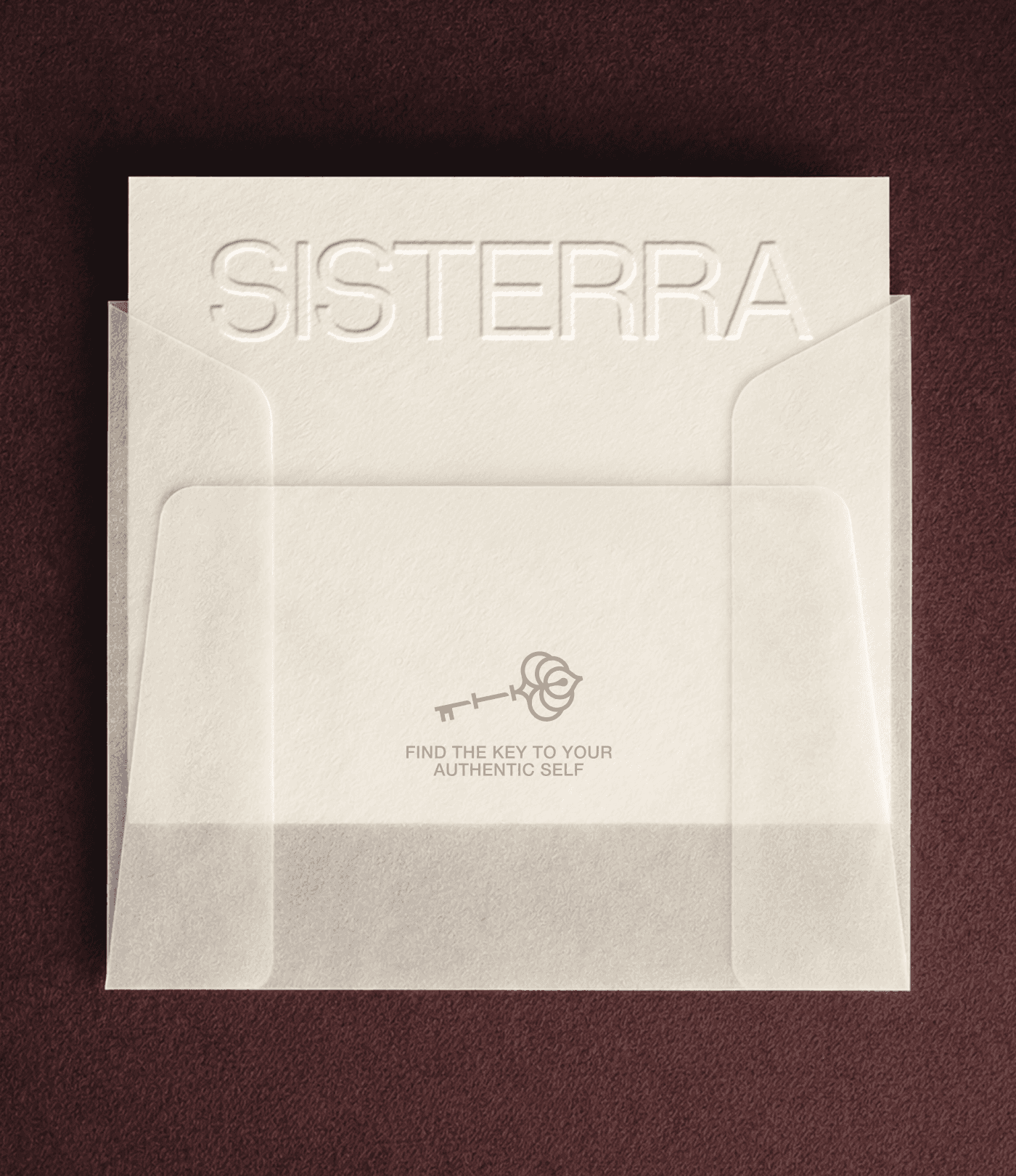 The logo combines the metaphor of a key — a symbol of access to oneself — with a flower that expresses natural femininity. Together, these symbols form the central idea of the brand: in the Sisterra space, you will find the key to your authentic self.