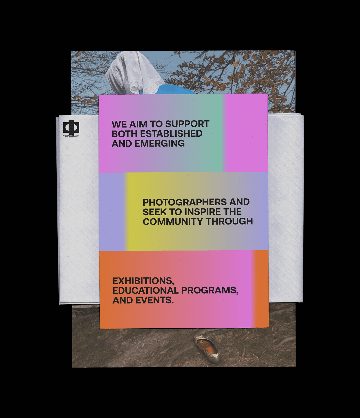 Its bold logo symbolizes unity and strength, echoing the Cyrillic letter “Ф” (the first letter of photography in Ukrainian) and the form of a camera lens—representing focus, framing, and perspective. The visual language reimagines the film burn effect with a bold, gradient-driven palette that reflects creative energy and contemporary art.